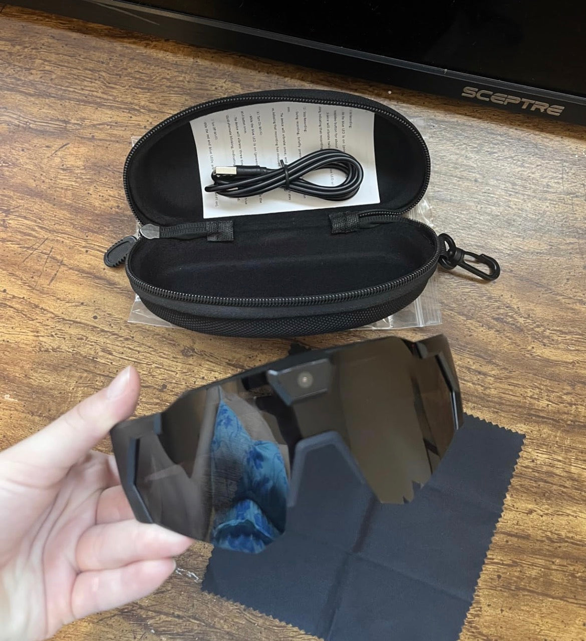 Simply plug the glasses into your computer or phone using the provided cable. Your videos will appear like normal files you can watch or share.